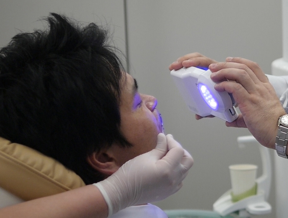 特殊な光を用いる検査機器「ORALOOK(オーラルック)」を使用し、肉眼では見つけにくい粘膜のわずかな異常を確認します。痛みや不快感のない検査で、数分ほどで終わるため、お口の健康チェックの一環として気軽に受けていただけます。
