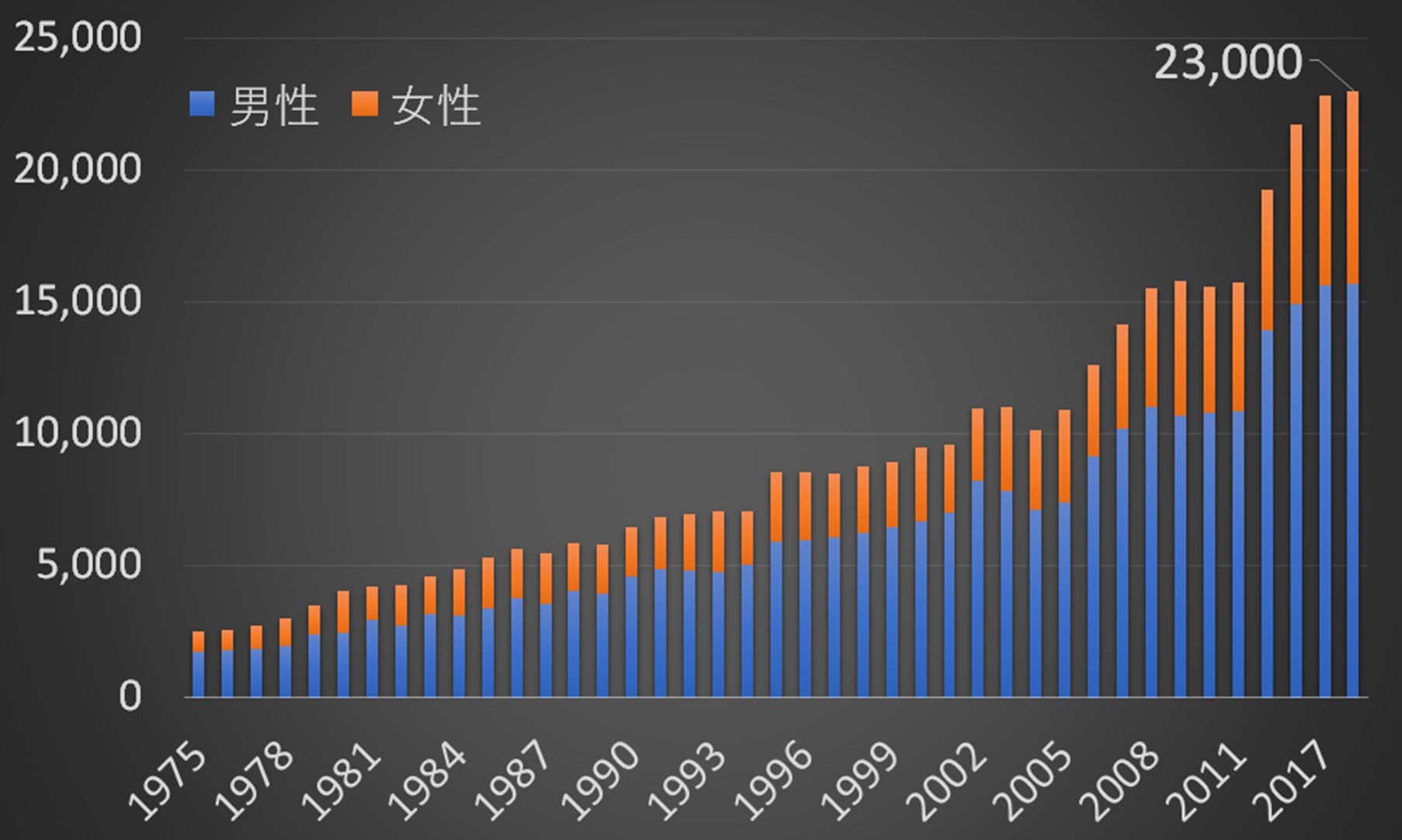 口腔がんによる年間死亡者数